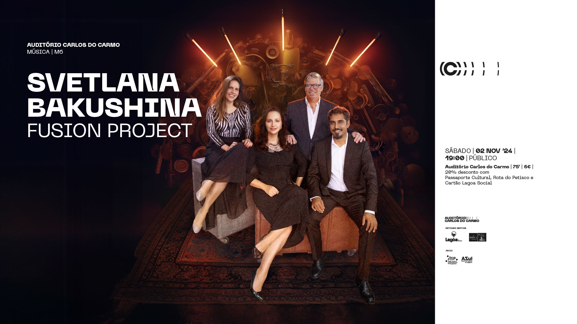 Sinopse: O Svetlana Bakushina Fusion Project tem o prazer de anunciar o lançamento do seu segundo álbum, "Algarvia", que será apresentado no Auditório Carlos do Carmo, em Lagoa, no dia 2 de novembro de 2024, às 19h00.