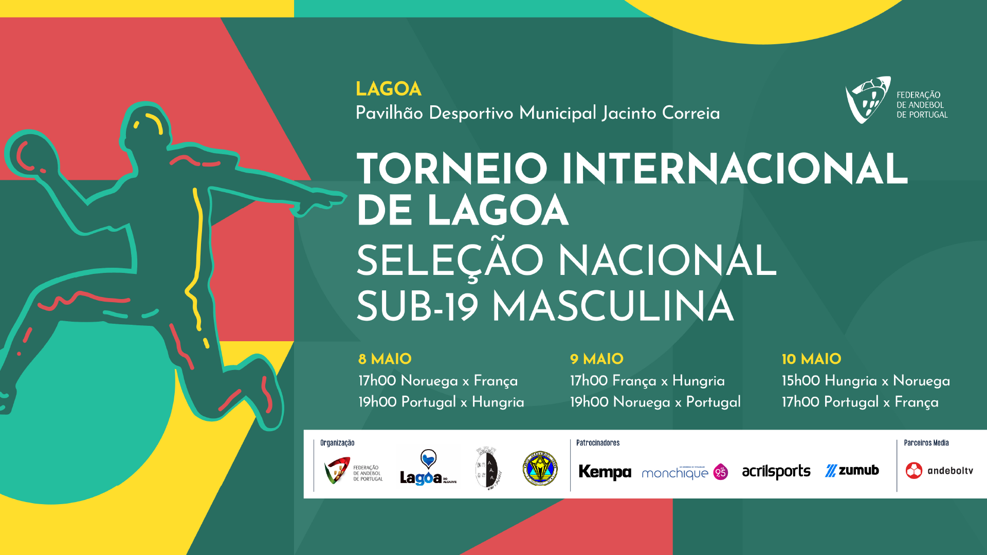 Entre os dias 08 e 10 de maio o Pavilhão Desportivo Municipal Jacinto Correia, em Lagoa, recebe o 🏐Torneio Internacional de Lagoa🤾♂️, em andebol, na modalidade de seleções masculinas de sub-19, estando presente a Seleção Nacional. A entrada é gratuita!