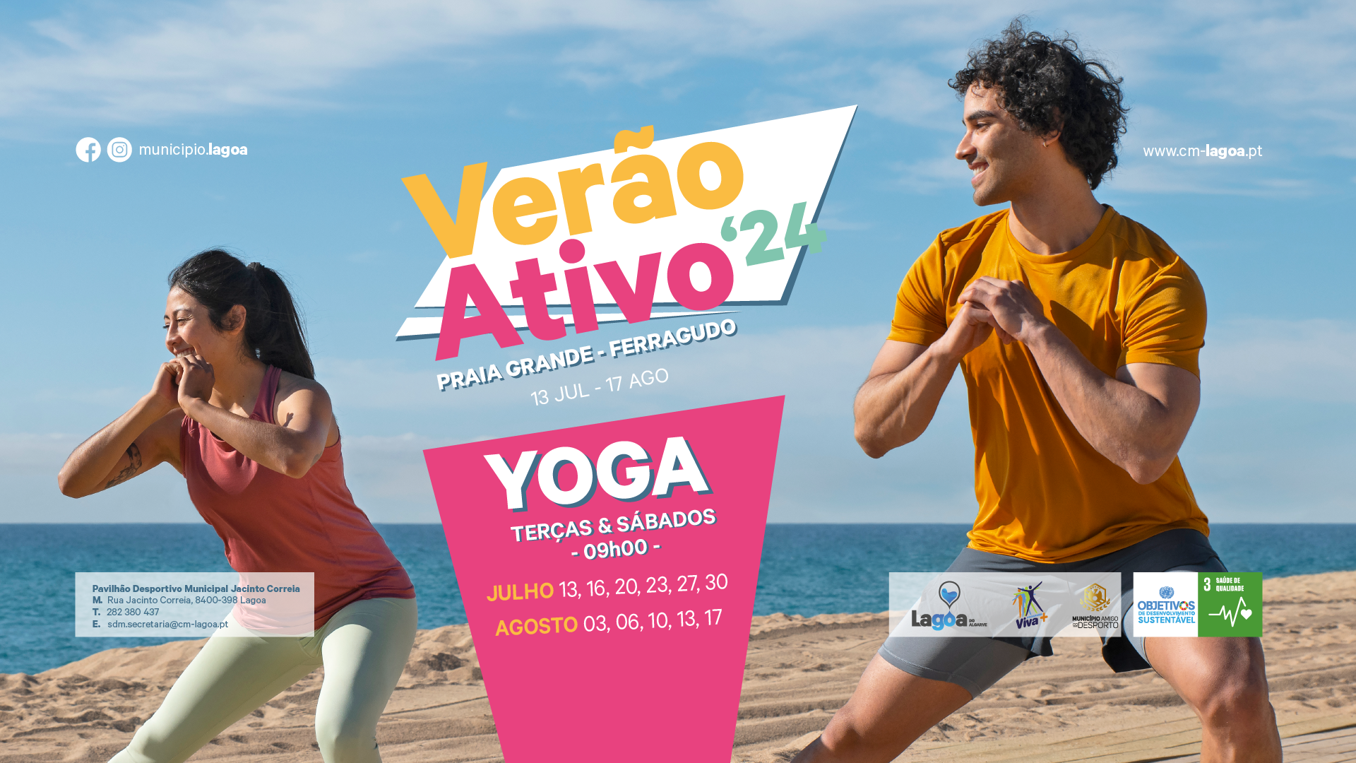 Sinopse: O Município de Lagoa, volta a promover o Projeto 🏖️Verão Ativo🧘♂️, que consiste em aulas de fitness de Yoga na Praia Grande, em Ferragudo.