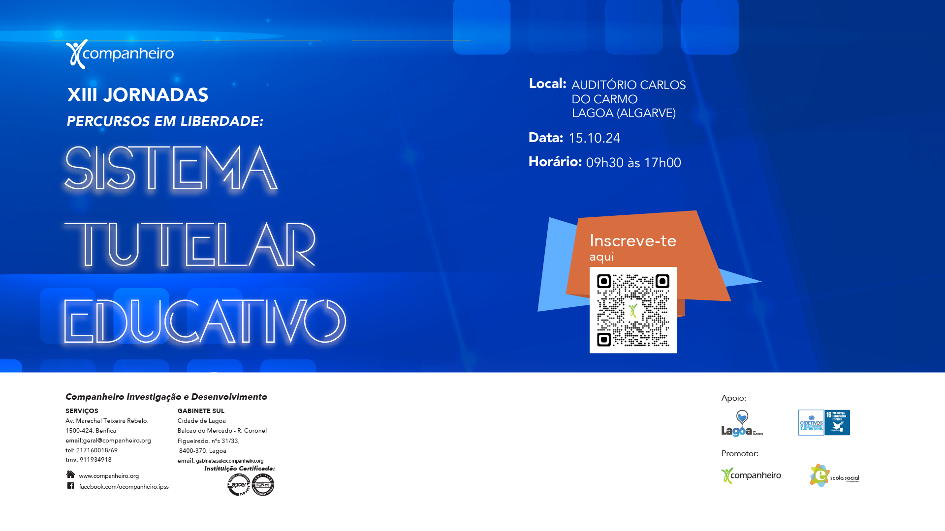 Faça a sua inscrição e participe nas XIII Jornadas d'O Companheiro: Percursos em Liberdade - Sistema Tutelar Educativo. 🙌