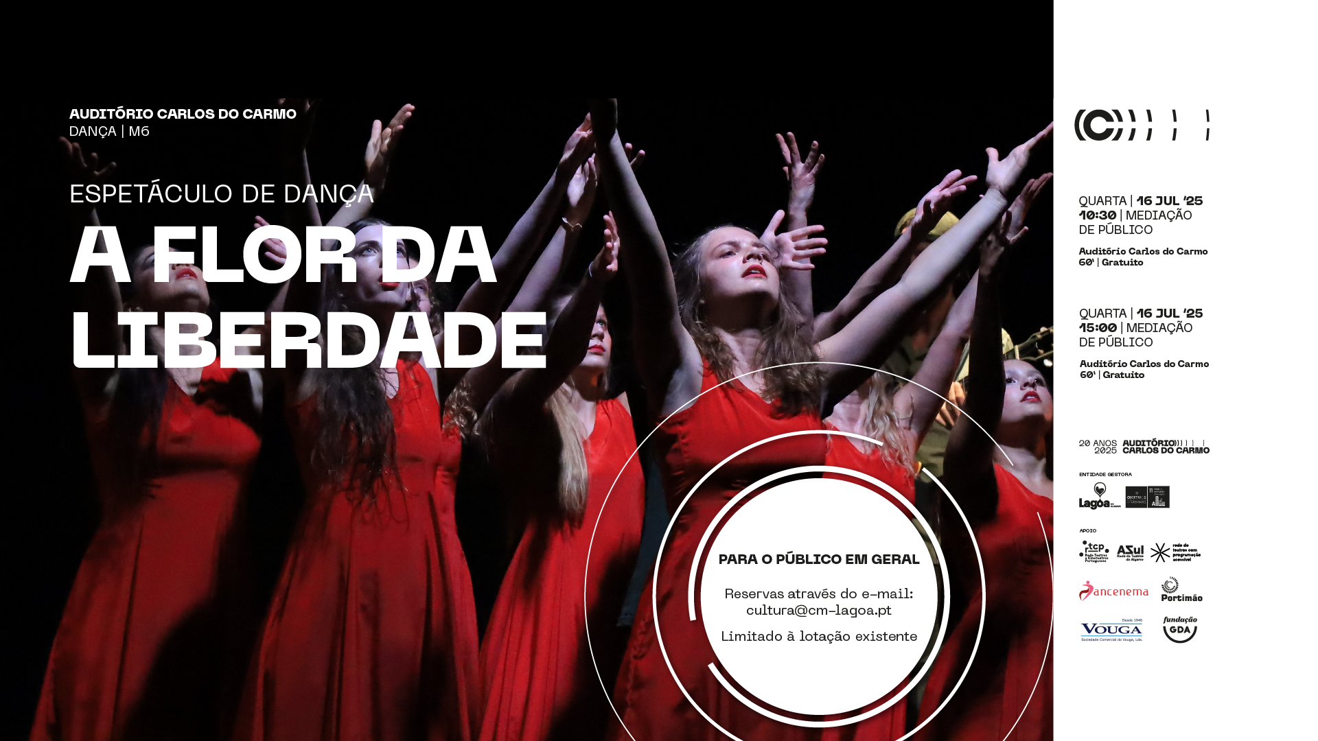 A Associação Cultural Dancenema sobe ao palco do Auditório Carlos do Carmo, em Lagoa, no dia 16 de julho com o espetáculo de dança 🩰A Flor da Liberdade🌹, com duas sessões gratuitas, a primeira pelas 10h30, e a segunda pelas 15h00. Poderá efetuar a sua reserva através do e-mail: cultura@cm-lagoa.pt e os lugares são limitados à lotação existente.
