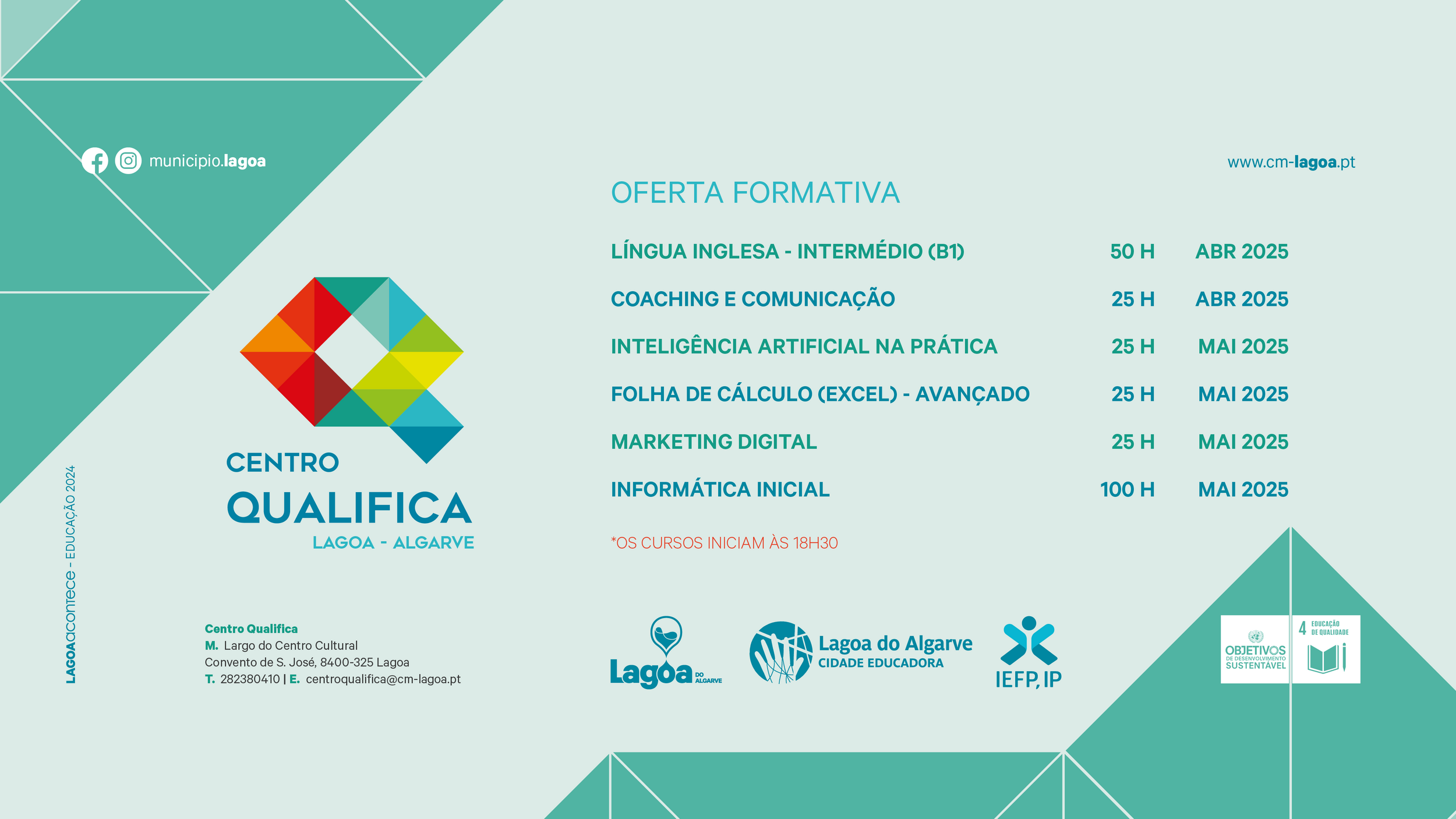 Mais informação através dos contatos: centroqualifica@cm-lagoa.pt | 282 380 410 | 939 807 646