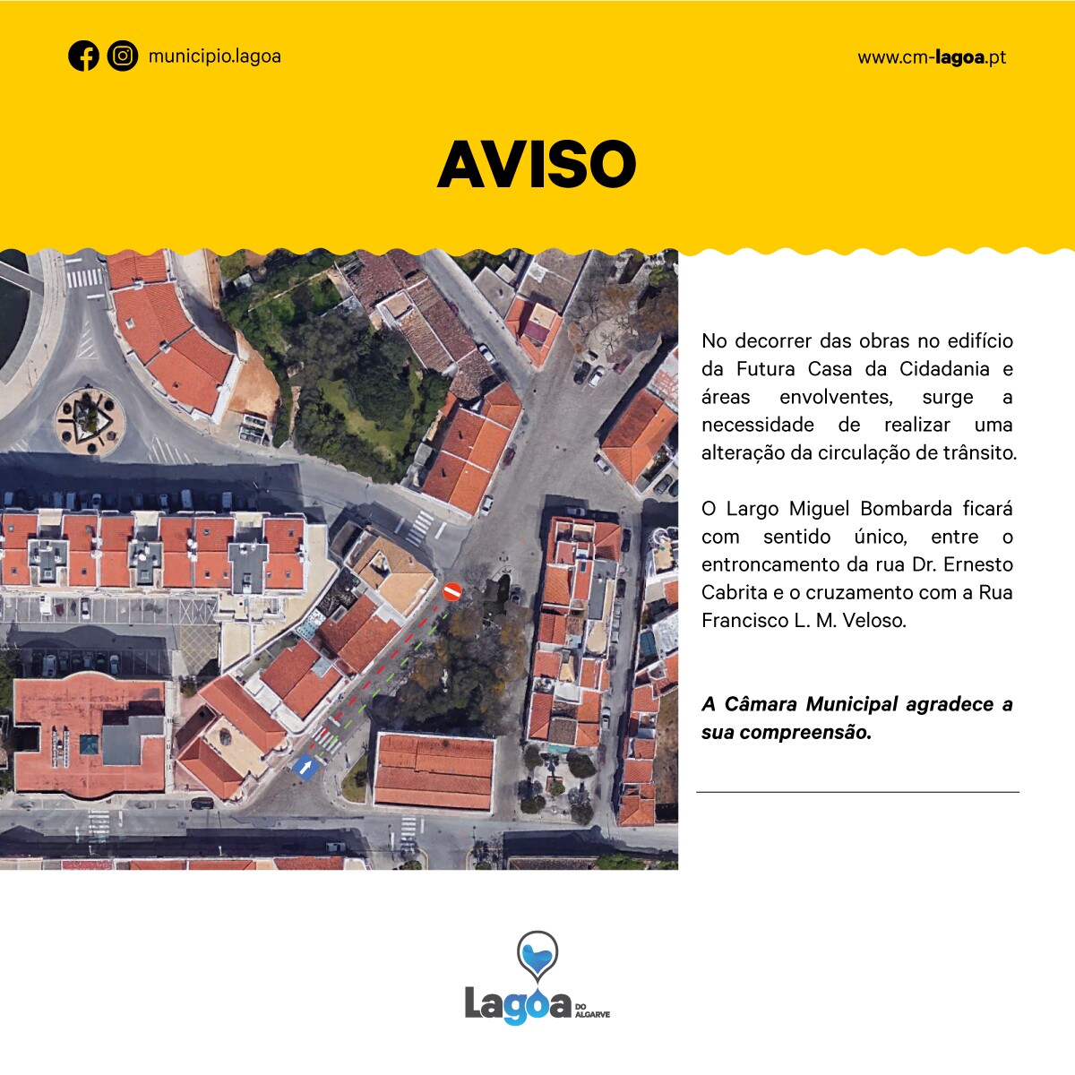 A Câmara Municipal de Lagoa informa que, no decorrer das obras no edifício da Futura Casa da Cidadania e áreas envolventes, surge a necessidade de realizar uma alteração da circulação de trânsito.