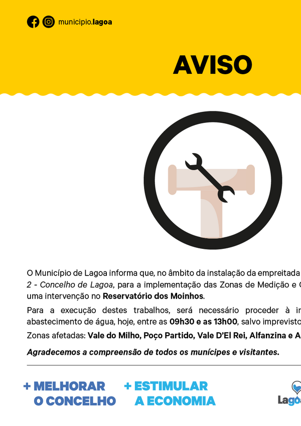O Município de Lagoa informa que, no dia 28 de outubro, terá início, na Rua Sá Carneiro, em Lagoa, a empreitada de ...Eventos | Página Inicial | Alertas -