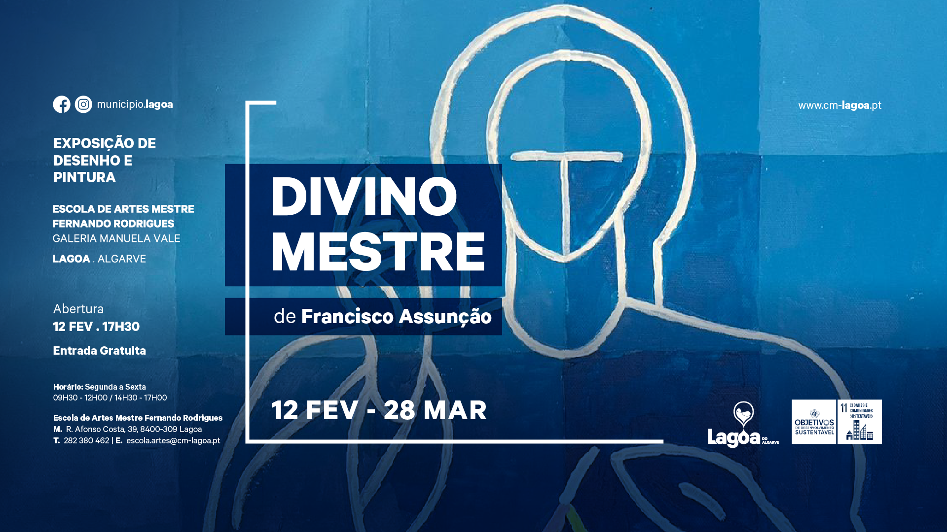 A Galeria Manuela Vale, na Escola de Artes Mestre Fernando Rodrigues, em Lagoa, recebe a Exposição de Desenho e Pintura 🖼️Divino Mestre🎨, de Francisco Assunção, que ficará patente de 12 de fevereiro a 28 de março e a entrada é gratuita!