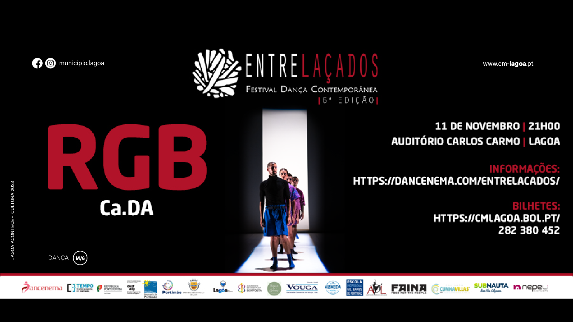 O Auditório Carlos do Carmo volta a ser um dos palcos do “Entrelaçados”, Festival de Dança Contemporânea que este ano realiza a 6ª edição. O festival passar por Lagoa no dia 11 de novembro, pelas 21h00 com o espetáculo “RGB”, pela Ca.DA, Companhia de Dança de Almada,