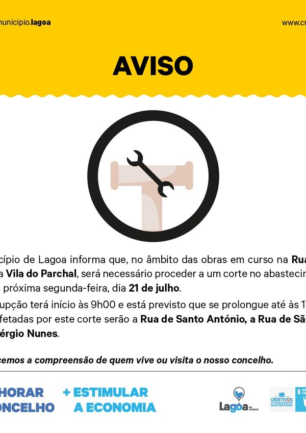 O Município de Lagoa informa que, no dia 28 de outubro, terá início, na Rua Sá Carneiro, em Lagoa, a empreitada de ...Eventos | Página Inicial | Alertas -