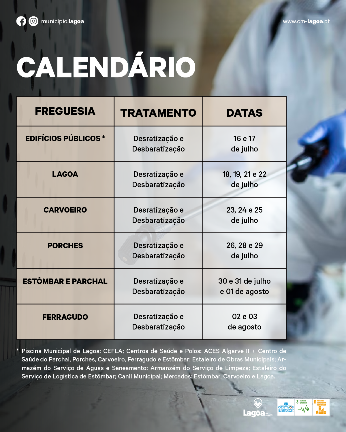 O Município de Lagoa assegura a desinfestação de todos os espaços públicos, serviço que consiste em garantir o controlo das pragas de ratos, baratas, carraças, pulgas, formigas, vespas e bicho-de-conta.