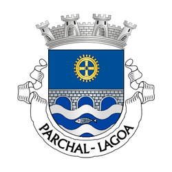 Escudo de azul, ponte de três arcos de prata, realçada de negro, firmada nos flancos e movente de uma ponta ondada de prata e azul de três tiras ondadas, a do meio carregada de um peixe de prata, animado de vermelho, em chefe, roda dentada de ouro. Coroa mural de prata de quatro torres. Listel branco, com a legenda a negro: Parchal – Lagoa.