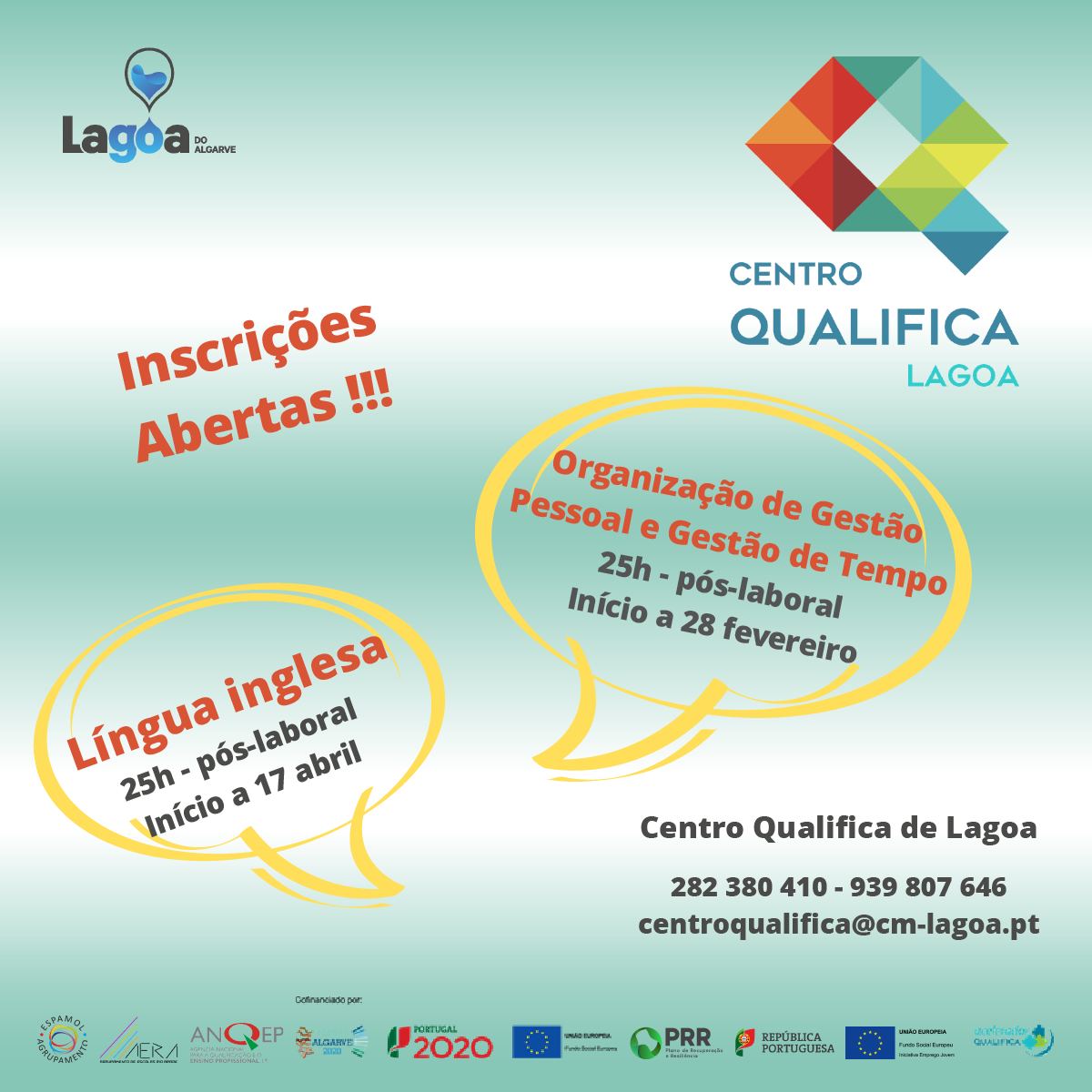 Para mais informações ou esclarecimentos poderá entrar em contacto através do email: centroqualifica@cm-lagoa.pt ou dos números: 939 807 646 | 282 380 410