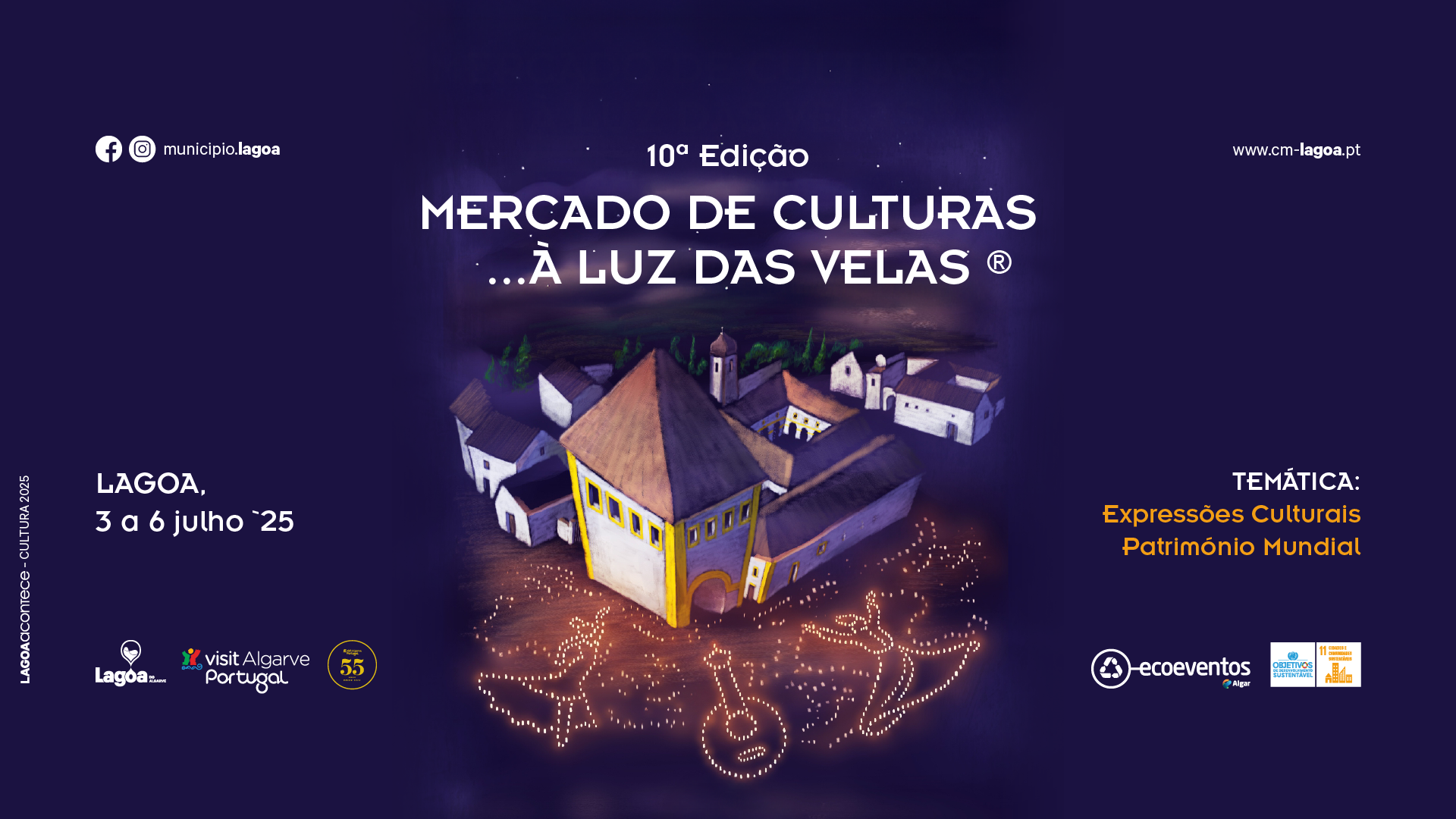 De 3 a 6 de julho de 2025, o Município de Lagoa promove a 10ª edição do Mercado de Culturas… à Luz das Velas, um dos eventos culturais mais emblemáticos do Algarve, que volta a transformar o centro histórico da cidade – com destaque para o Convento de São José e ruas envolventes – num cenário de luz, diversidade e diálogo intercultural.