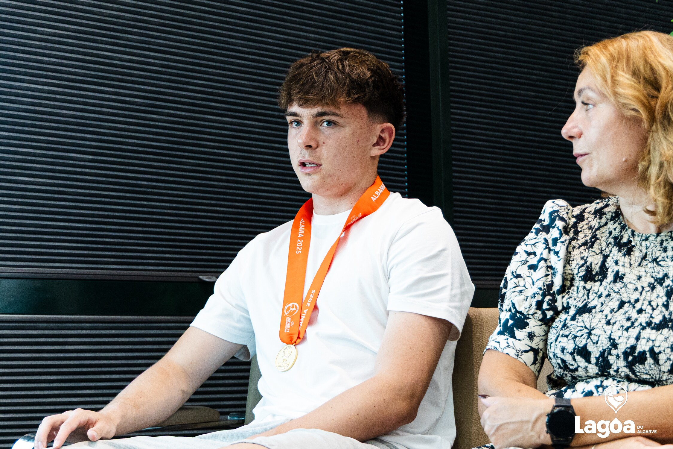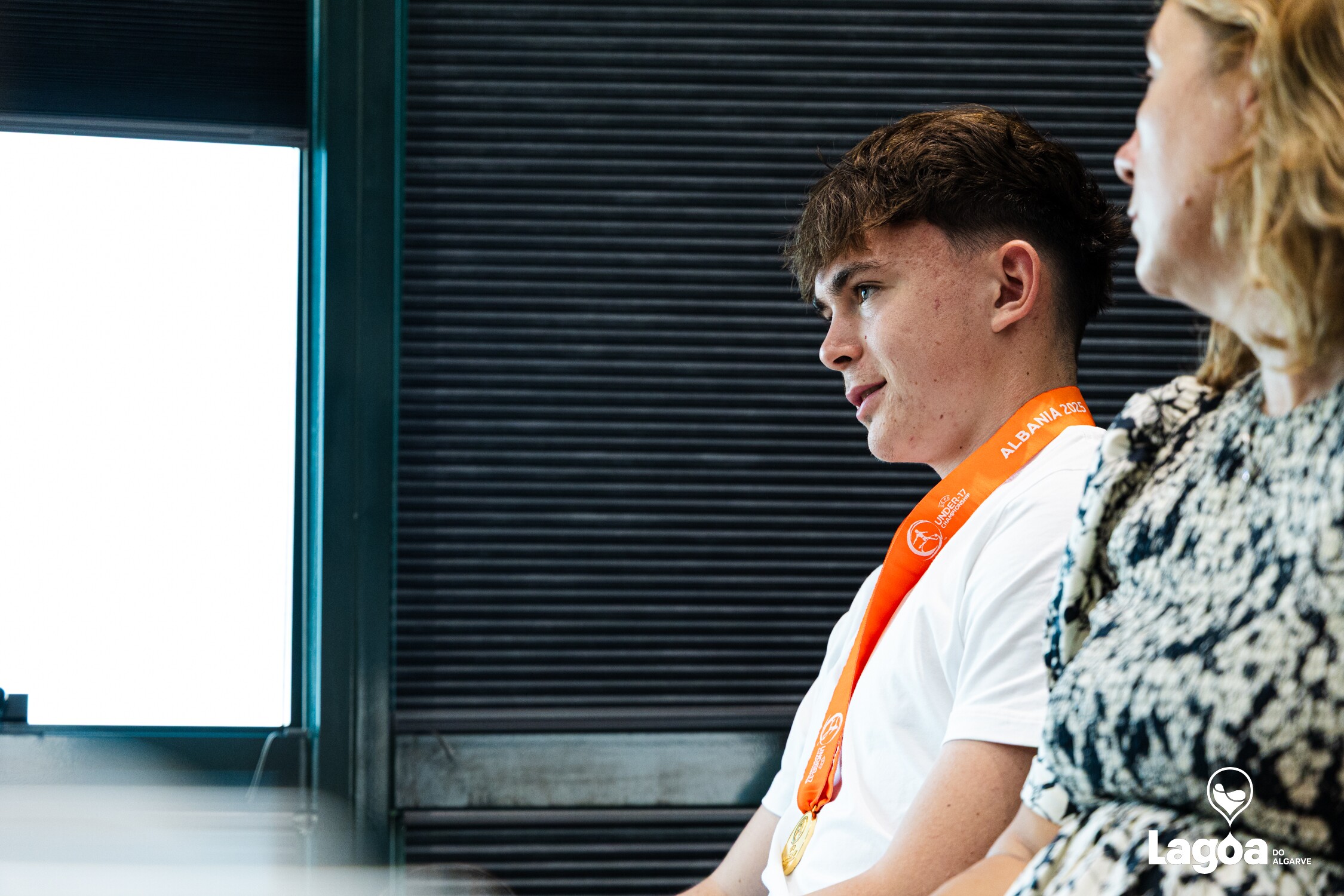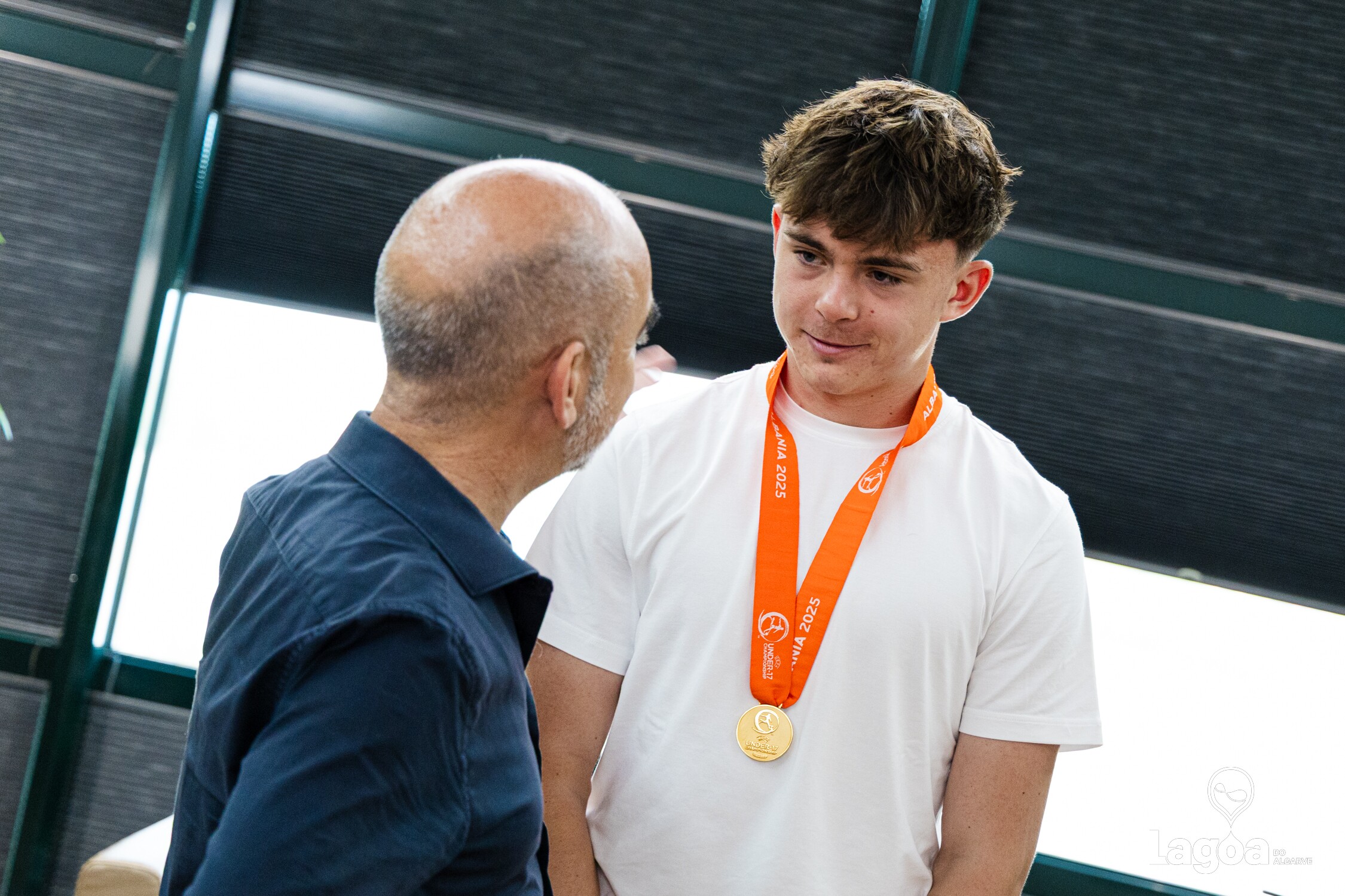João Simões, campeão nacional 2024/2025 e vencedor da Taça de Portugal ao serviço do Sporting CP, recebido pela Câmara Municipal de Lagoa