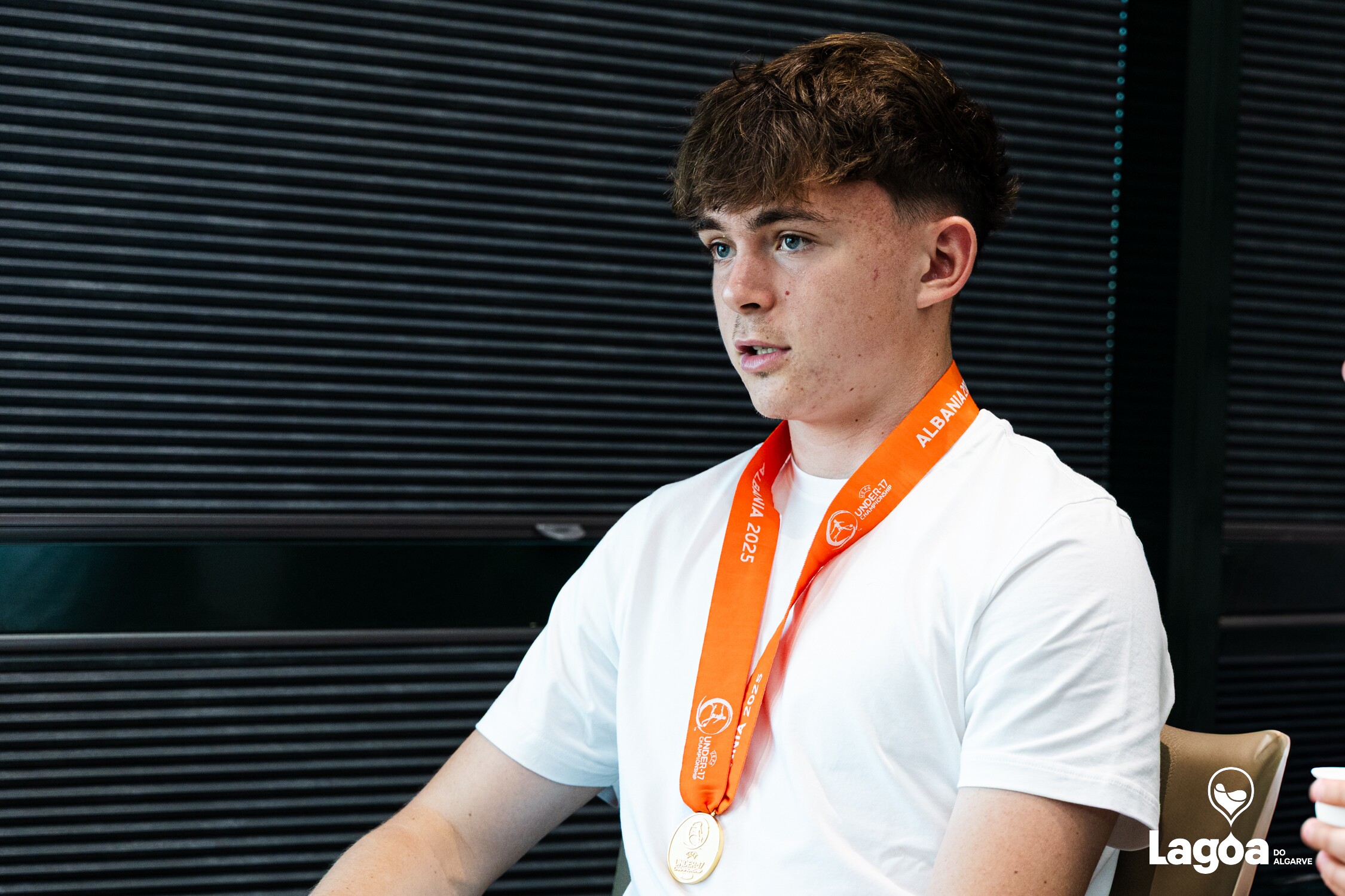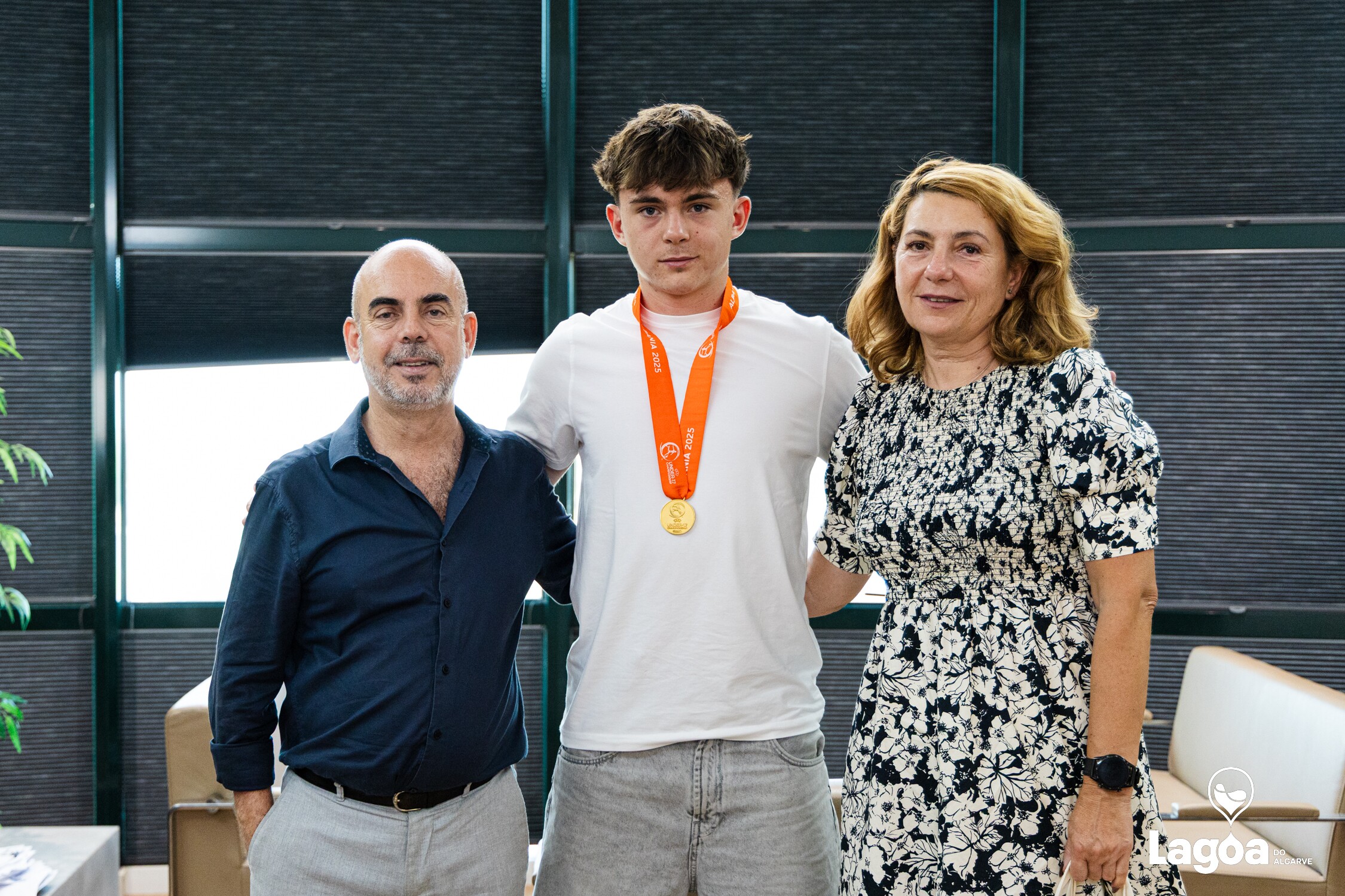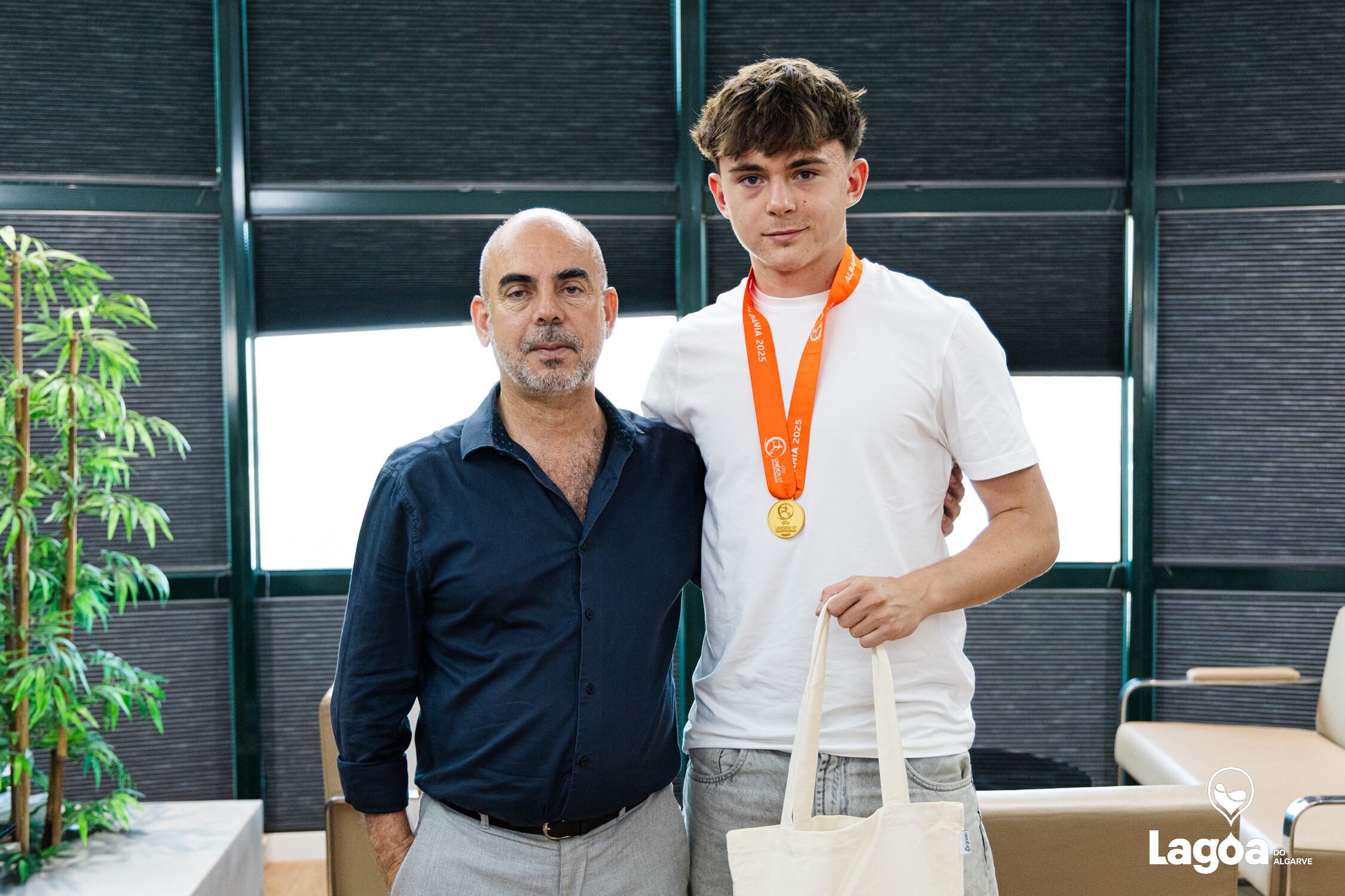 João Simões, campeão nacional 2024/2025 e vencedor da Taça de Portugal ao serviço do Sporting CP, recebido pela Câmara Municipal de Lagoa