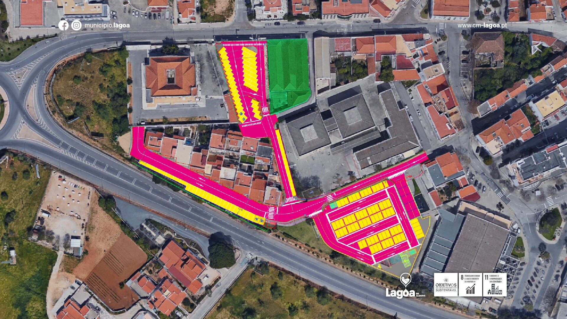 No mesmo projeto está integrada a requalificação da zona envolvente ao CEFLA e Pavilhão Municipal de Lagoa, onde está previsto a construção de uma praça com um novo parque de estacionamento, com dois pisos, que irá contribuir para resolver a histórica falta de lugares de estacionamento naquela zona, bem como a substituição de todas as infraestruturas existentes (rede de água, rede de esgotos, rede de iluminação pública e rede de telecomunicações).