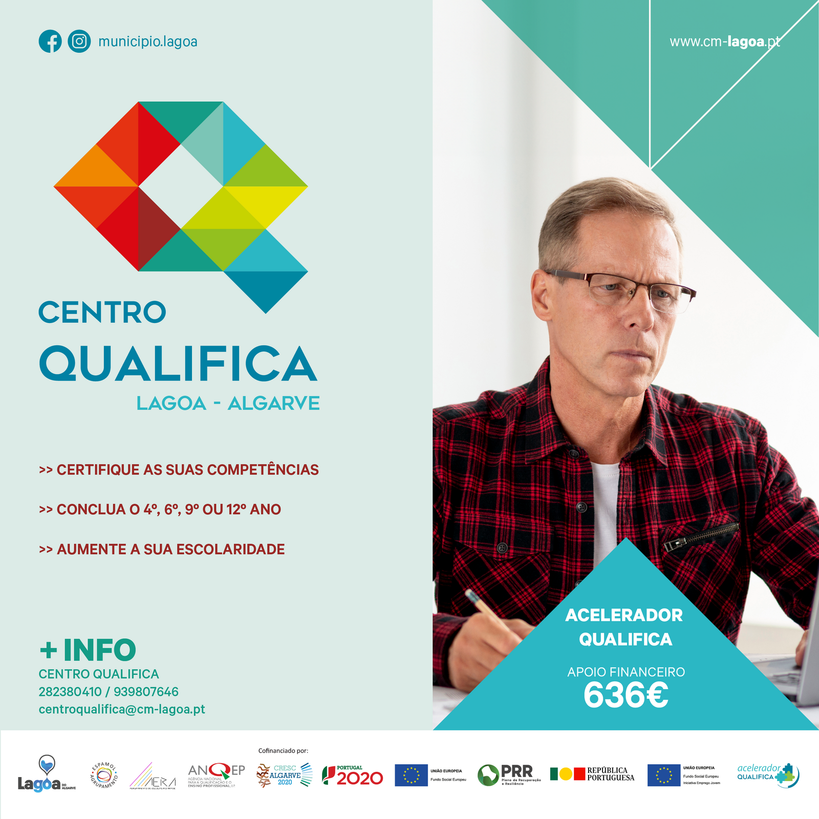 No Centro Qualifica do Município de Lagoa tem acesso a um serviço que visa a obtenção de uma qualificação escolar, podendo realizar um processo de reconhecimento, validação e certificação de competências (RVCC) que lhe dará acesso a um certificado escolar (9.º ou 12.º ano).