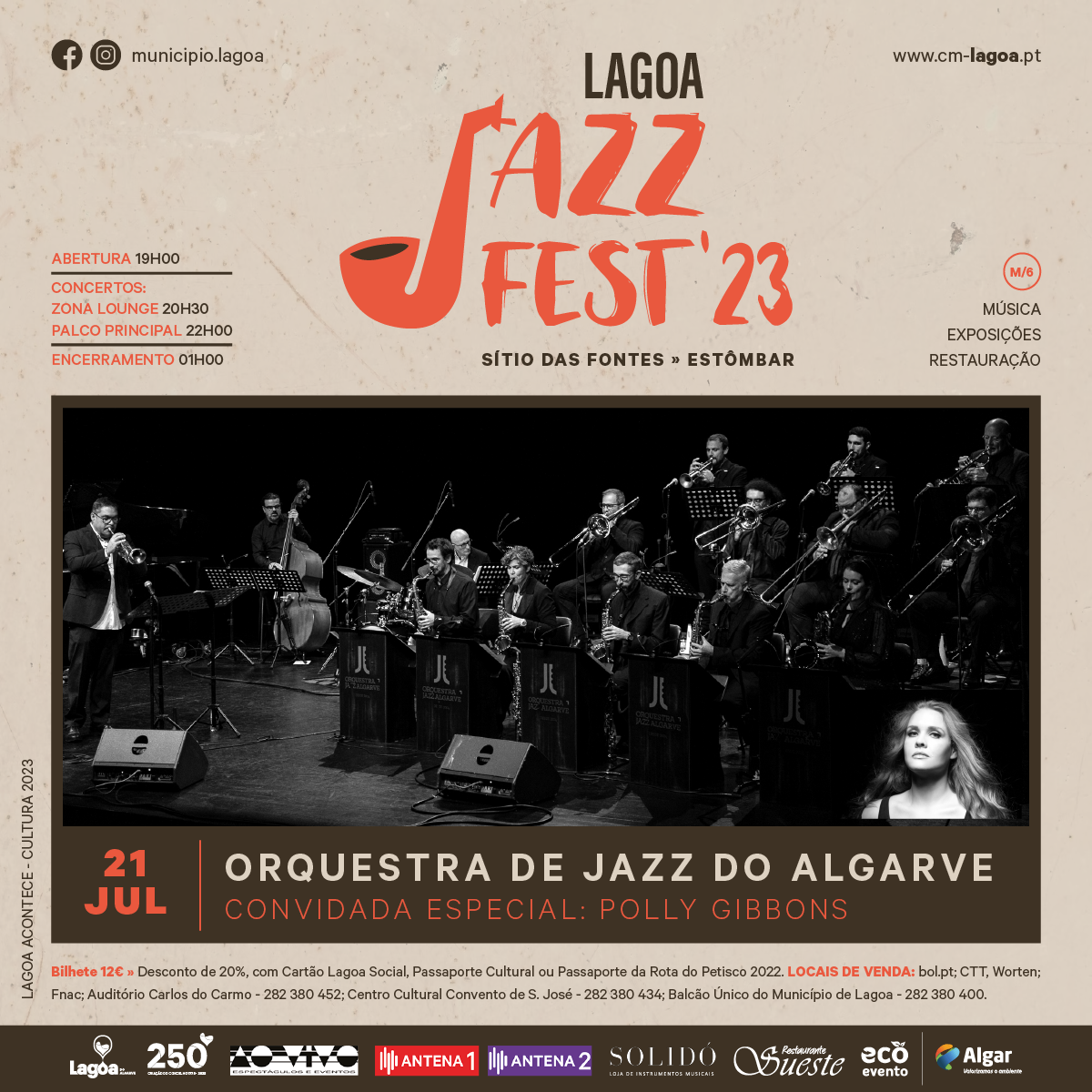 O Município de Lagoa informa que, inicialmente, anunciou que seria a cantora Jane Monheit a artista convidada que iria atuar com a Orquestra de Jazz do Algarve. No entanto, por uma questão de saúde, pontual, a vinda de Jane Monheit teve de ser cancelada. A cantora será substituída pela cantora Polly Gibbons. Os bilhetes já adquiridos para o dia 21 de julho continuarão válidos. No entanto, se houver algum cidadão que queira a restituição do dinheiro gasto na aquisição do bilhete, o mesmo será restituído.