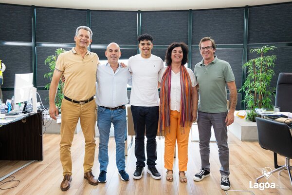 João Simões, campeão nacional 2024/2025 e vencedor da Taça de Portugal ao serviço do Sporting CP, recebido pela Câmara Municipal de Lagoa