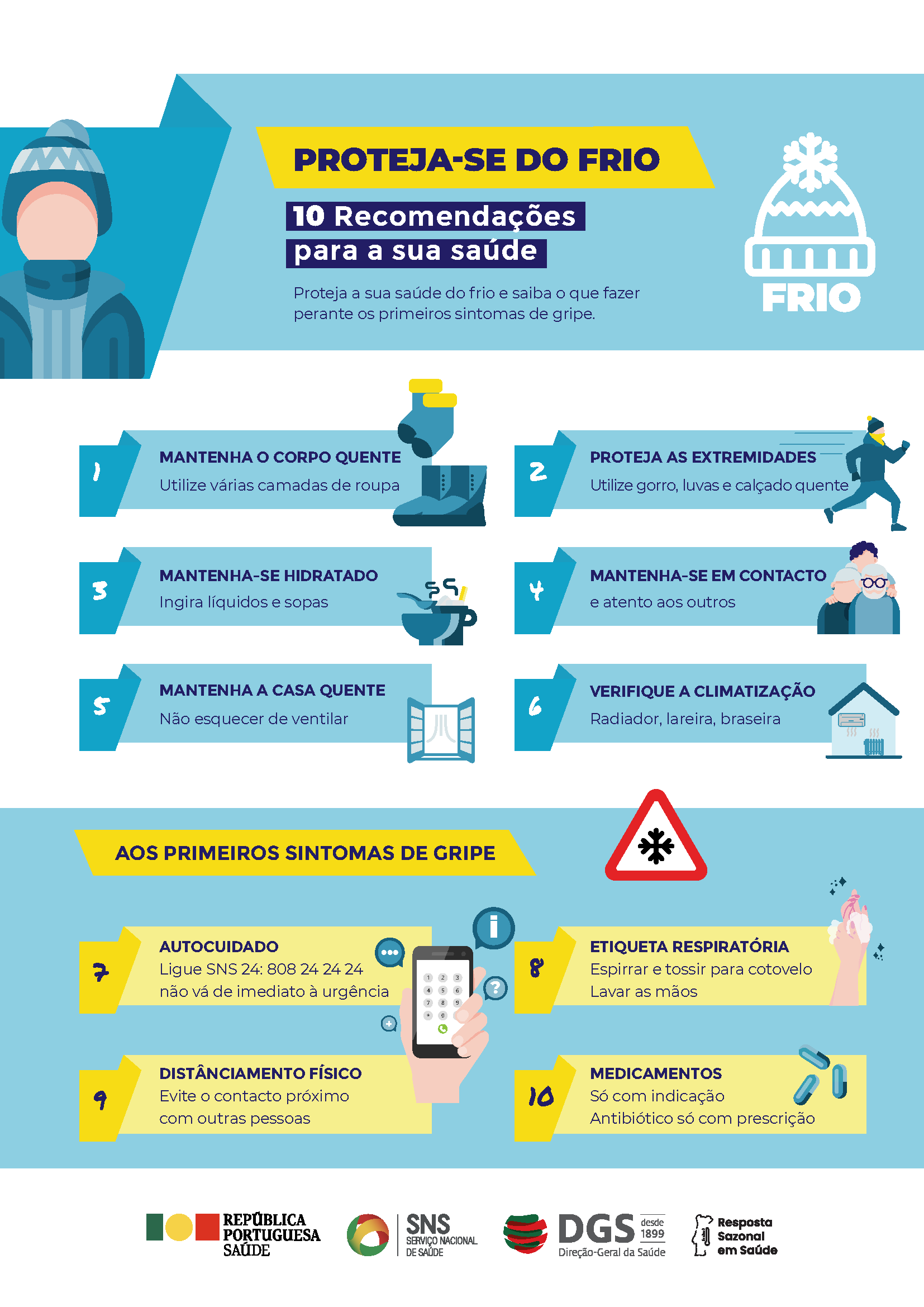 Para se proteger dos efeitos negativos do frio na saúde, a Direção-Geral da Saúde e o Município de Lagoa recomendam: